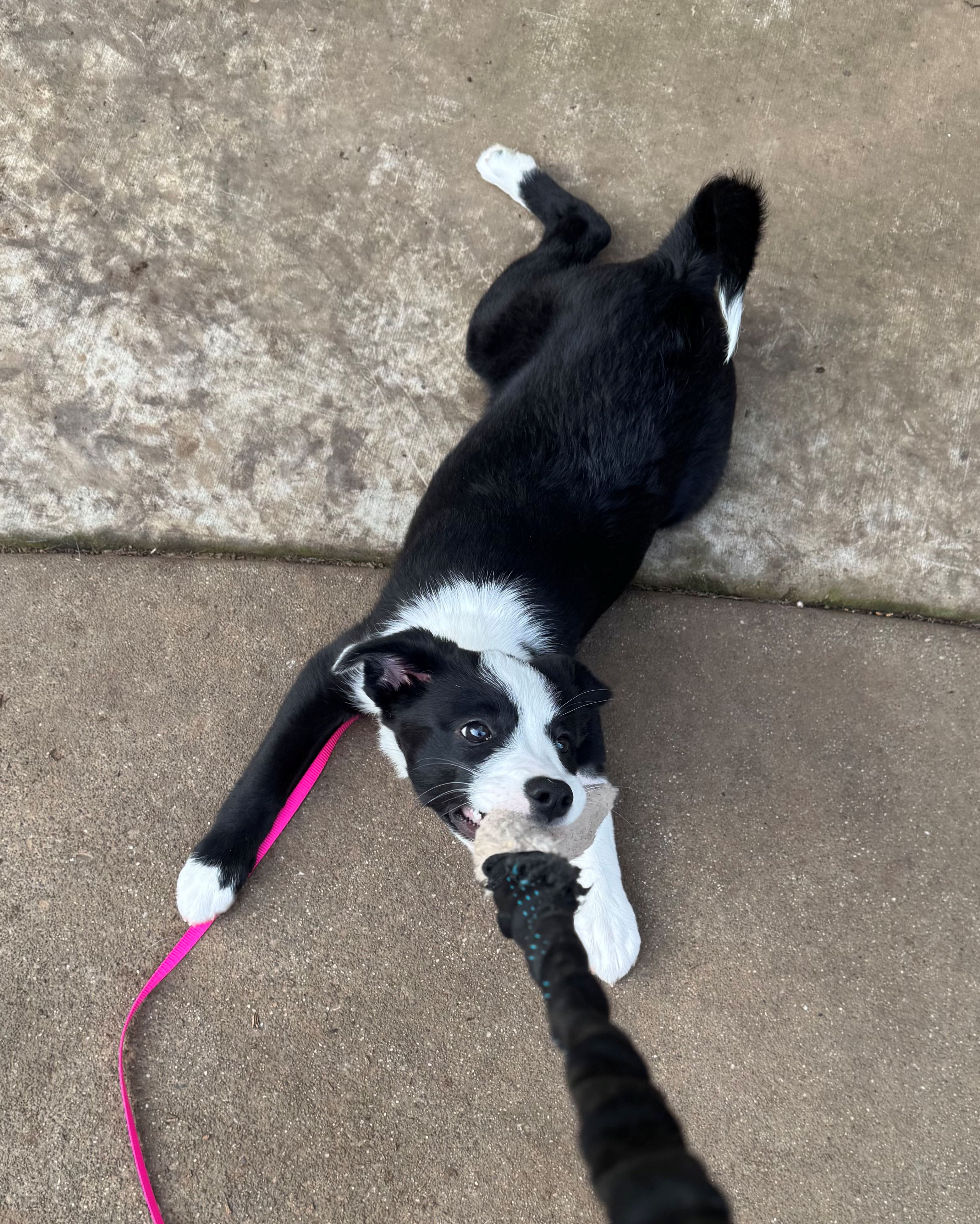 Say “hello” to Birdie, a 15#, 13-week-old border collie girlie, who is ready for her next big adventure. This little girl is up for anything. Go to the vet? Sure, she’ll chase her lotus ball around the vet’s chair until she finds the treats inside. Visit her foster mom’s workplace with elevators, stairs, a bunch of new people, and on a day when it’s pouring rain outside? Sure, no problem: by the end of the day, she was assistant to the college publicist and had a bunch of new friends. Visit big dogs? Sure: let them try to catch her! Birdie is confident, social, curious, independent, and absolutely and hilariously lovable. It goes without saying that she’s a smarty pants, too!