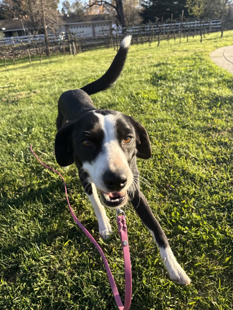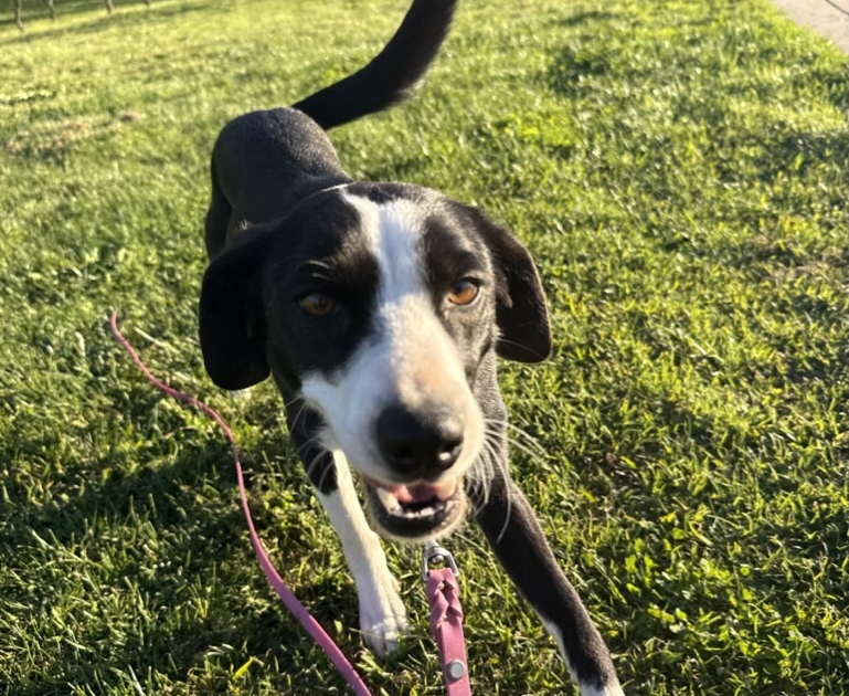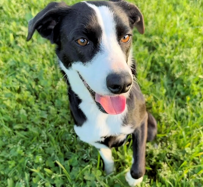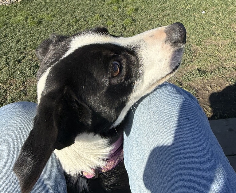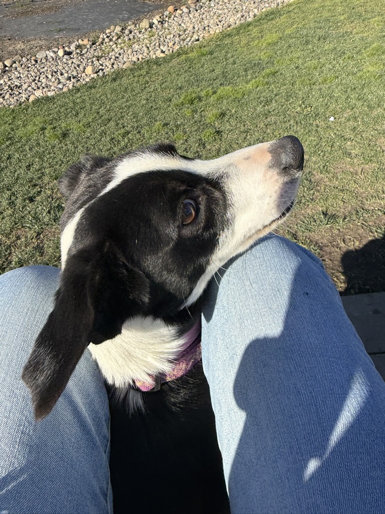 SADIE is an approximately one-year-old border collie mix weighing in at a perfect 23 pounds—an ideal size for all of life’s adventures. Whether it’s neighborhood strolls, weekend outings, or patio brunch, Sadie is ready to be your sidekick.