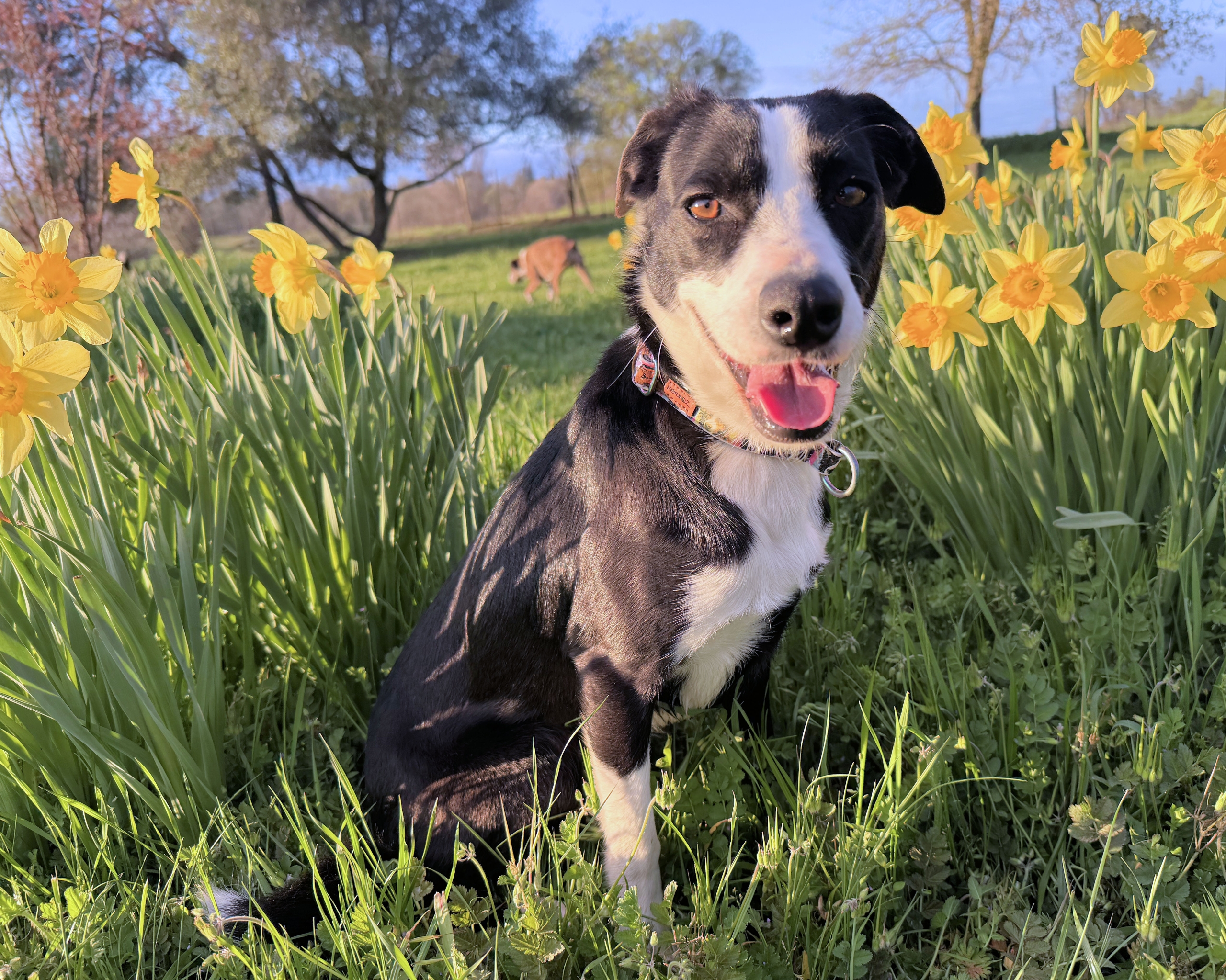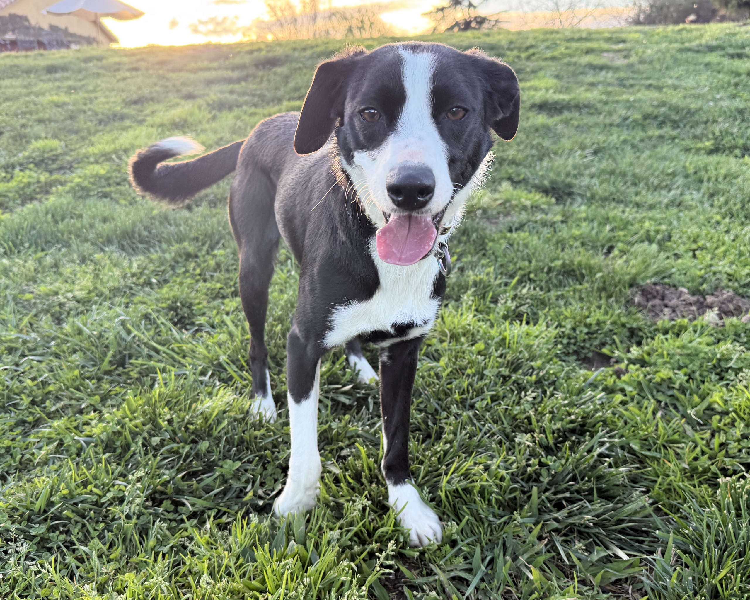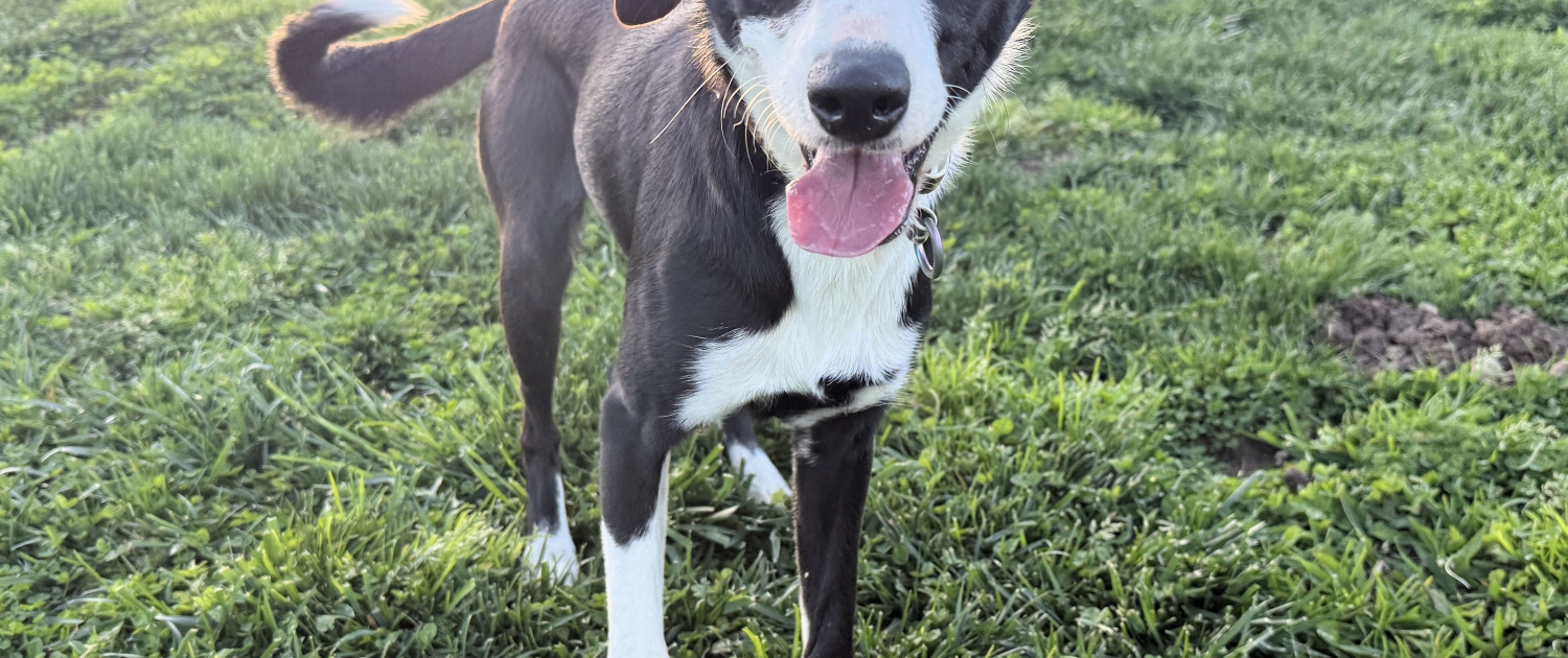 SADIE is an approximately one-year-old border collie mix weighing in at a perfect 23 pounds—an ideal size for all of life’s adventures. Whether it’s neighborhood strolls, weekend outings, or patio brunch, Sadie is ready to be your sidekick.