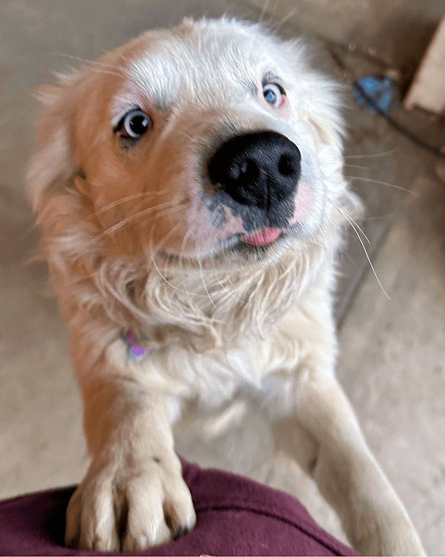 Yurei is very energetic and would LOVEEEEE to be taken for walks, hikes, strolls, or just to have a giant yard to run around in with you. Another thing about Yurei is he was the runt of a litter and was the last puppy, he is deformed in his bottom jaw since he is a double Merle mini Border Collie. His bottom jaw doesn’t match his top jaw and is slightly shorter so his tongue hangs out a lot! This doesn’t affect his eating or drinking at all, just make sure his food is wet or soaked in warm water during winter and cold water during summer so it softens up if you use kibble. He also has some neurological issues from being a lethal white runt so he can get stuck in these ‘herding trances’ and will run back and forth, chase imaginary bugs (also real bugs!). Easy way to snap him out of it is pet him or call his name. He will gladly run over to you and plant himself in your lap.