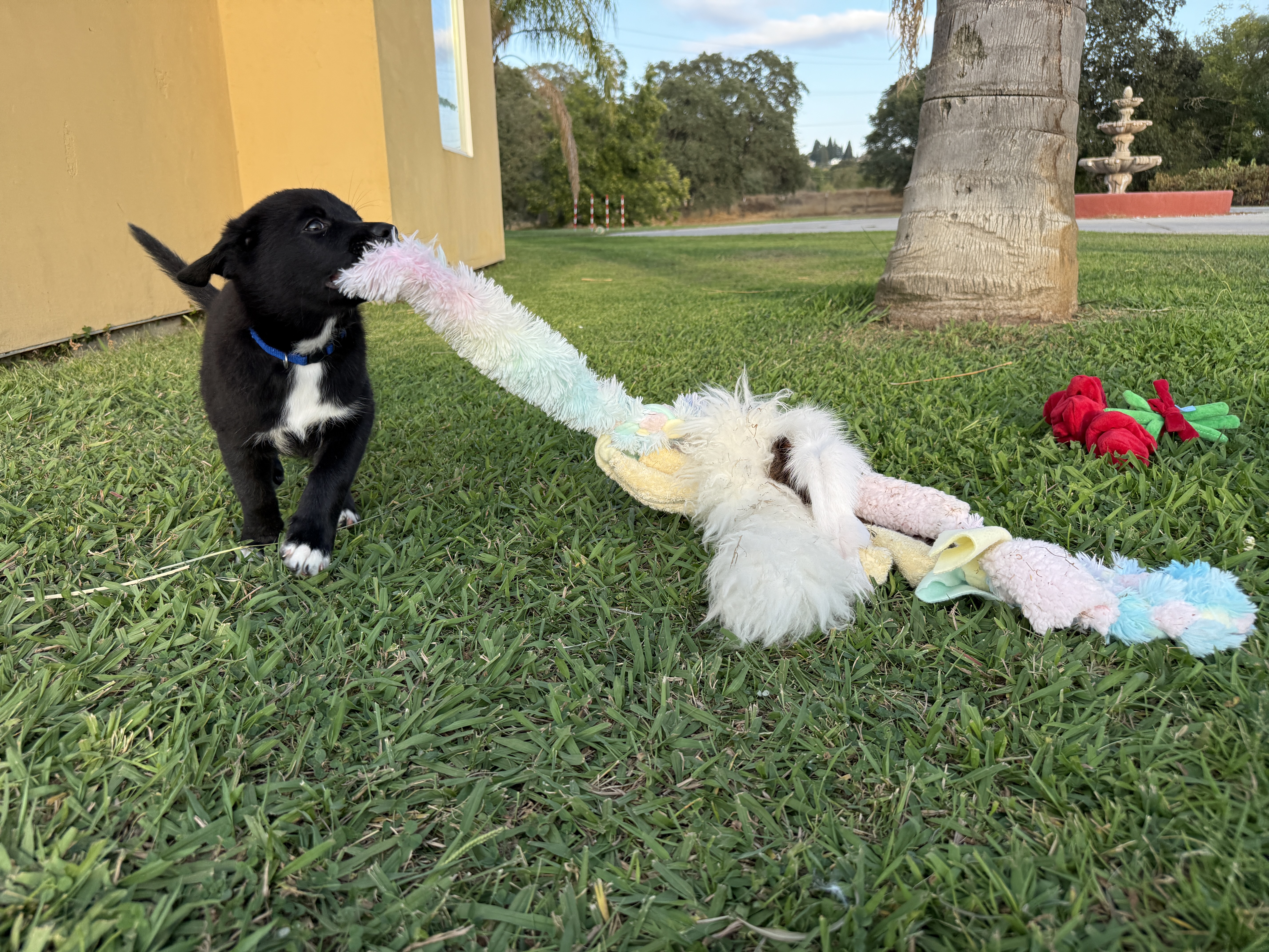 JET is started on his puppy vaccines, wormed, and microchipped. He is also on flea & tick and heartworm prevention. As a condition of puppy adoption, he will need to be neutered when he reaches approximately 6 months (specific time to be determined by your vet). In addition to the adoption fee, puppy adoption requires a $75 spay/neuter deposit. Upon our receiving the spay/neuter certificate from you, the deposit is refunded. If you have an approved Northern California Border Collie Rescue Application (or apply here – https://norcalbcrescue.org/adoption/adoption-application/) and wish to enquire about JET, please email us at Adoptions@norcalbcrescue.org.