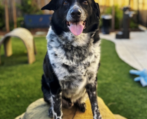 Meet Willow! Willow is an approximately 5-month-old puppy weighing about 23 pounds, and she’s the perfect mix of adventurous and affectionate. With her beautiful black-and-white rough coat and bright personality, she’s sure to capture hearts wherever she goes.